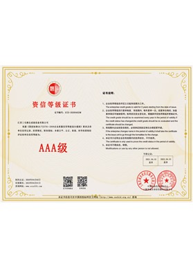先后通過ISO9001國際質(zhì)量體系認(rèn)證、ISO14001國際環(huán)境體系認(rèn)證、OHSAS18001國際職業(yè)健康安全體系認(rèn)證及3159002國際信用管理體系認(rèn)證、CE認(rèn)證以及取得國家知識產(chǎn)權(quán)多項實(shí)用型專利。
